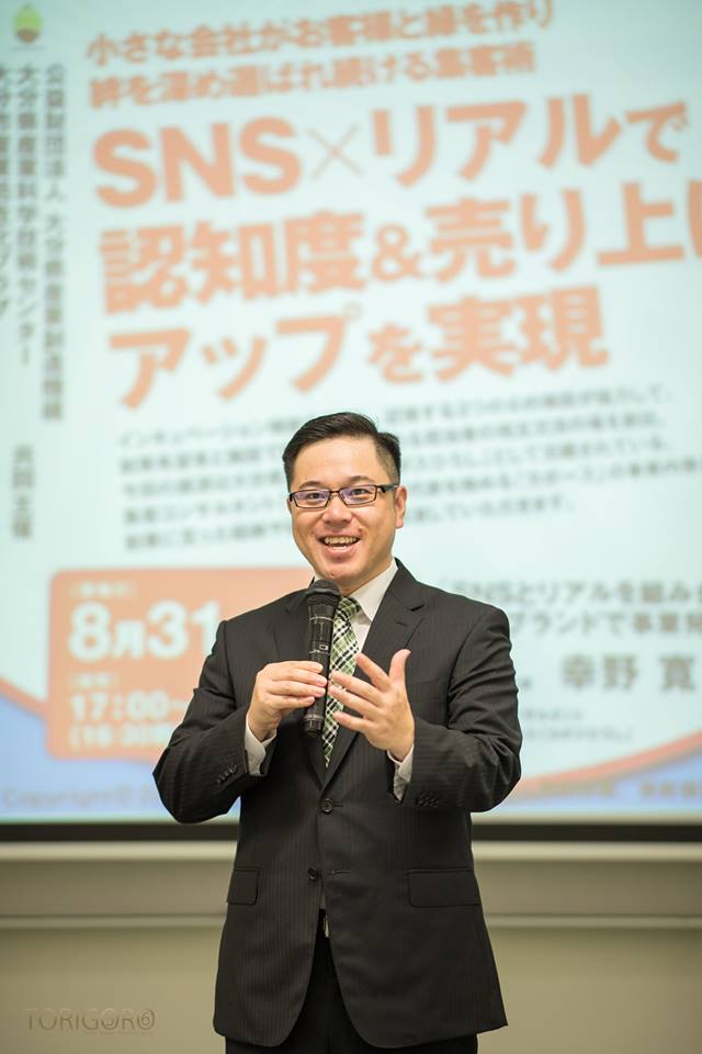 小さな会社がお客様と絆を作り、絆を深め選ばれる集客術セミナーが2017年8月31日に大分市ホルトホールで開催されました。Cabooosu代表の幸野寛が講師として実体験から得たノウハウを講演。